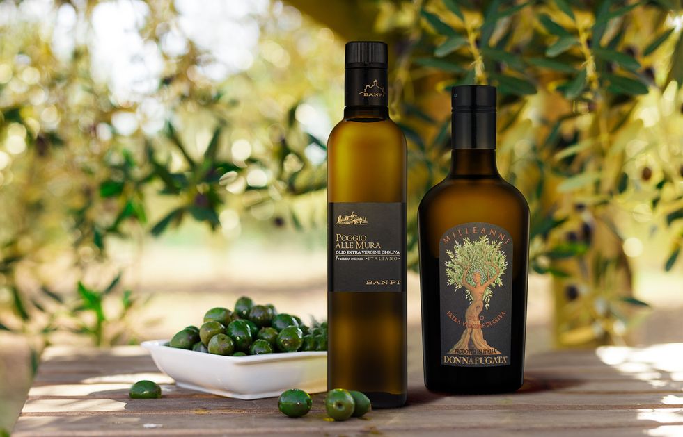 Poggio alle Mura — светло-зелёное, очень фруктовое и с тонами артишоков и свежеобжаренного кофе. Свое масло Banfi делают из тосканского сорта франтойо, который пользуется популярностью во всем мире, так как дает масла стабильно высокого качества. Оливковые деревья растут около замка Poggio alle Mura — с него началась история хозяйства и здесь же родилось его великое брунелло. Терруар подарил вину и маслу схожие черты: оба отличаются мощным, объемным ароматом и долгим послевкусием.