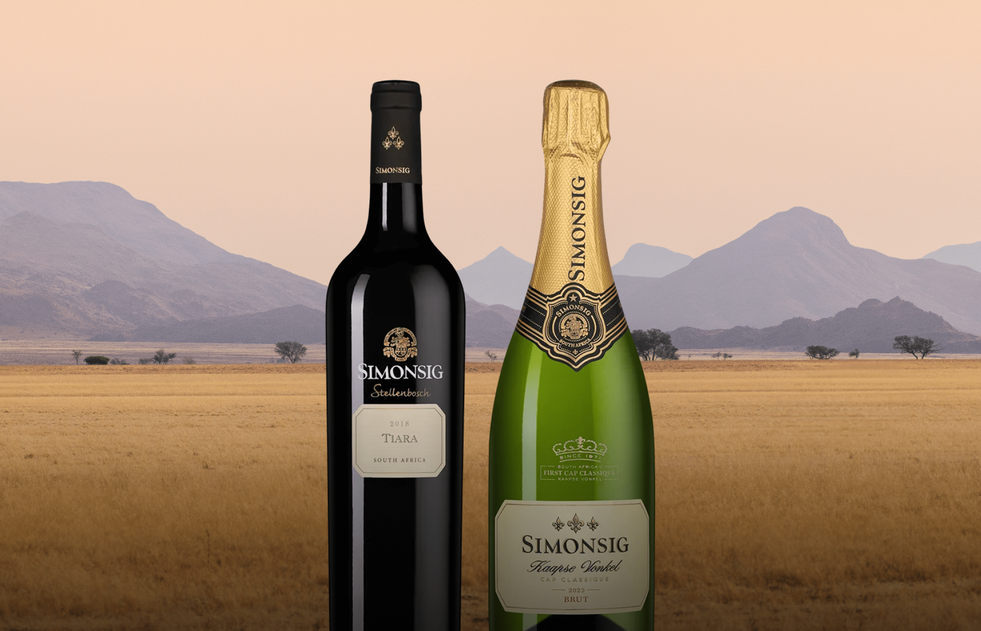Первое игристое Simonsig сделали из шенена блан — в то время это был единственный сорт на виноградниках Малана, — а потом уже к шенену добавили пино нуар и выразительный пинотаж. Сегодня для Kaapse Vonkel Brut используют классический бленд из шардоне, пино нуара и пино менье с выдержкой на осадке в течение как минимум 20 месяцев. Розовое игристое Kaapse Vonkel Brut Rosé производят из пино нуара, пинотажа и пино менье — на осадке выдерживают не менее 15 месяцев.