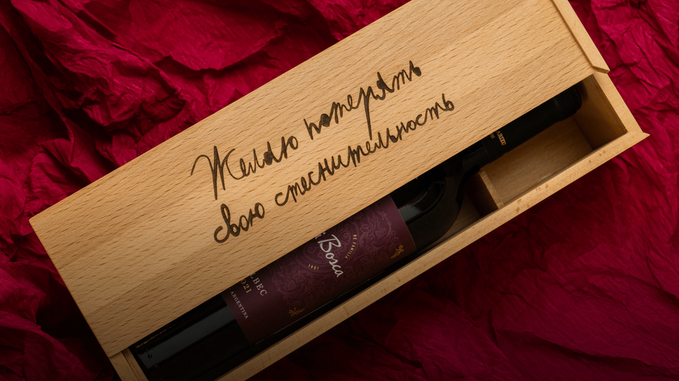 Мы объединились с фондом «Антон тут рядом» и выпустили подарочные боксы для вина. В коллекции — 60 ящиков ручной работы, которые создали участники инклюзивной столярной мастерской. На крышке каждого бокса авторы выгравировали надпись «Желаю потерять свою стеснительность» — высказывание принадлежит студенту фонда Илье Мурашову.