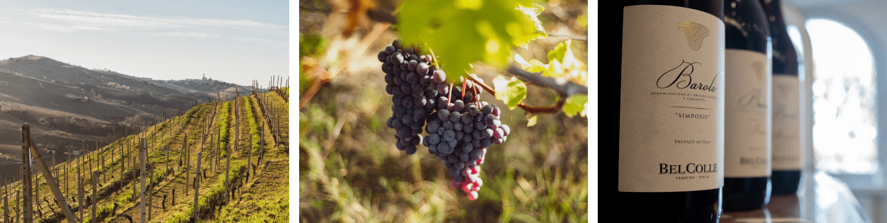Хозяйству принадлежат 10 га виноградников в самых престижных зонах Бароло, включая Монвильеро — выражение роскошной утонченности, и Буссию — едва ли не самый известный «Гран Крю». У Bel Colle есть вся классическая палитра бароло — от базовой версии до ризервы с 50-летних лоз. Хозяйство следует принципам невмешательства: виноградники обрабатывают вручную с использованием только органических препаратов и удобрений, а вино производят бережно — чтобы подчеркнуть индивидуальность каждого сорта.