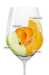 Золотисто-соломенный цвет. В аромате раскрывается тона яблока, абрикоса и других спелых фруктов. Округлое и гармоничное во вкусе, с приятной кислинкой и фруктовым послевкусием.