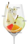 Светло-соломенный цвет. В аромате ноты спелых яблок, груш, а также цветочные и цитрусовые оттенки. Вкус сбалансированный с освежающим послевкусием.