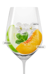 Бледно-лимонный цвет. Освежающий аромат в котором переплетаются тона белых цветов, цитрусовых фруктов, дополненные тонкими минеральными оттенками с нюансами мяты. Среднетелое, элегентное, со свежей кислотностью и солоноватым финишем.