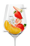 Светло-розовый с блеском цвет. В букете доминируют тона персиков, клубники и оттенки цветов. Округлое во вкусе, с приятным освежающим финишем.