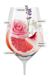 Золотисто-соломенный цвет. В букете переплетаются ноты жасмина, розы, лаванды и грейпфрута. Яркий аромат, гастрономичная кислотность и оттенки белого персика в продолжительном финише.